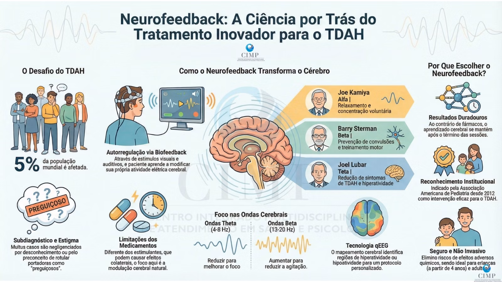 O Neurofeedback consolidou-se como uma ferramenta de intervenção clínica baseada na regulação da atividade elétrica cerebral. Desde suas origens na década de 1960, a técnica evoluiu de estudos fundamentais sobre o controle de ondas alfa 4 a 8 HZ para aplicações terapêuticas robustas no tratamento de condições como epilepsia e Transtorno de Déficit de Atenção e Hiperatividade (TDAH). O desenvolvimento desta área é sustentado pelas contribuições seminais de Joe Kamiya, Barry Sterman e Joel Lubar, cujas pesquisas demonstraram que o treinamento cerebral pode induzir estados de relaxamento, prevenir convulsões e mitigar sintomas comportamentais, recebendo reconhecimento de instituições como a Associação Americana de Pediatria.